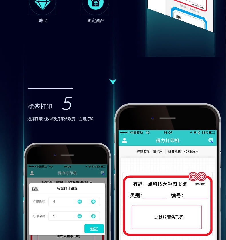 deli得力手持蓝牙标签打印机DL-286D蓝牙标签机 二维码条码标签热敏打印机