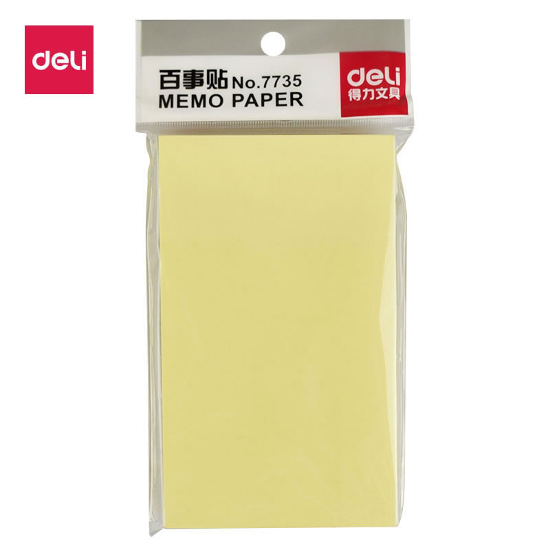 备注:deli得力7735 76*126mm黄色记事贴、备忘留言纸、便利贴、标签纸、便签纸、百事贴、N次贴。