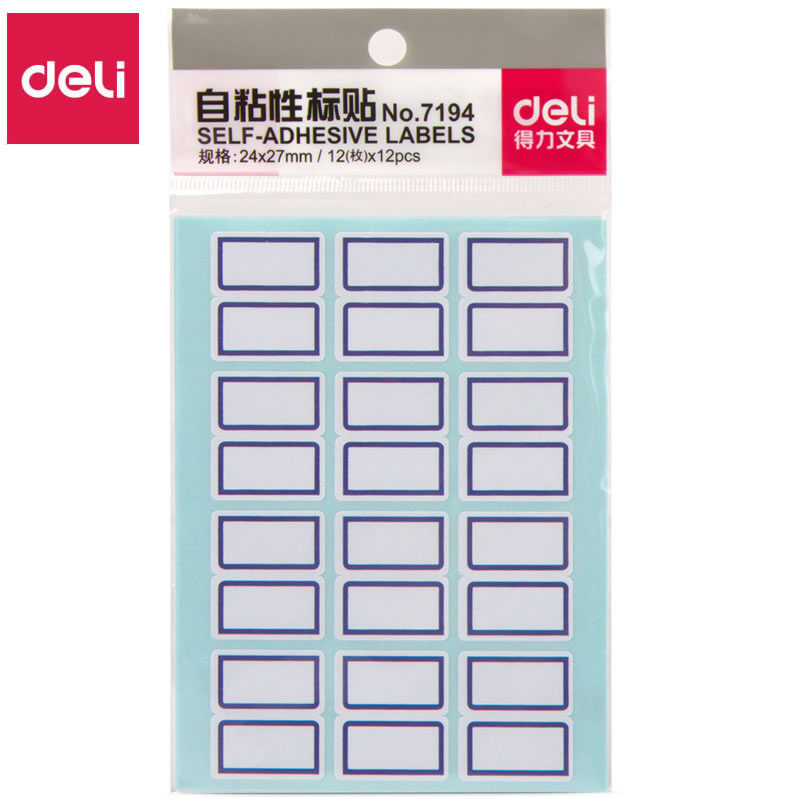 备注:deli得力7194 、24*27mm自粘性不干胶标签纸 、标签贴、姓名贴、口取纸、分类贴、标记贴。