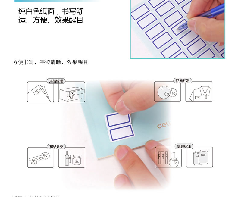 3、得力标签纸易撕易贴,简单实用,即贴即用。