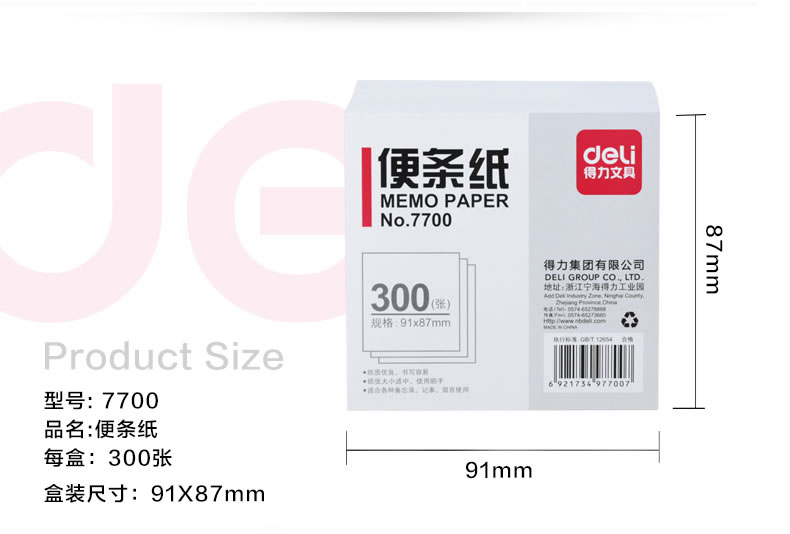 deli得力7700/91*87mm 300张便条纸白纸,便签本,留言本,空白纸,便签纸