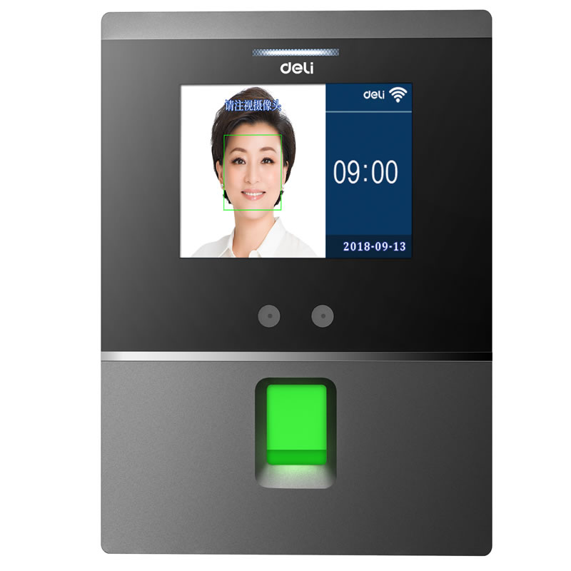 备注:deli得力D3人脸+指纹混合识别云考勤机 、人脸云考勤机刷脸签到机、 Wifi联网、 自助报表。
