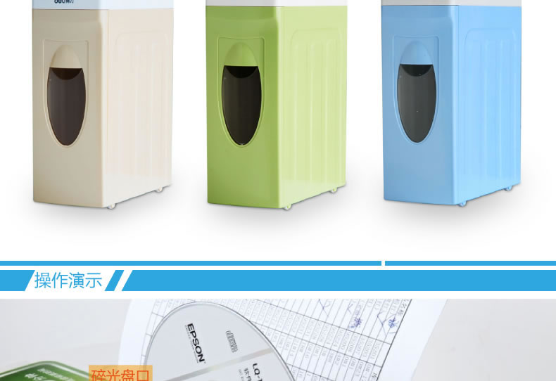 备注:deli得力9923 、4级保密办公碎纸机 、11升创意侧抽式多功能可碎光盘粉碎机 、单次碎纸5张。