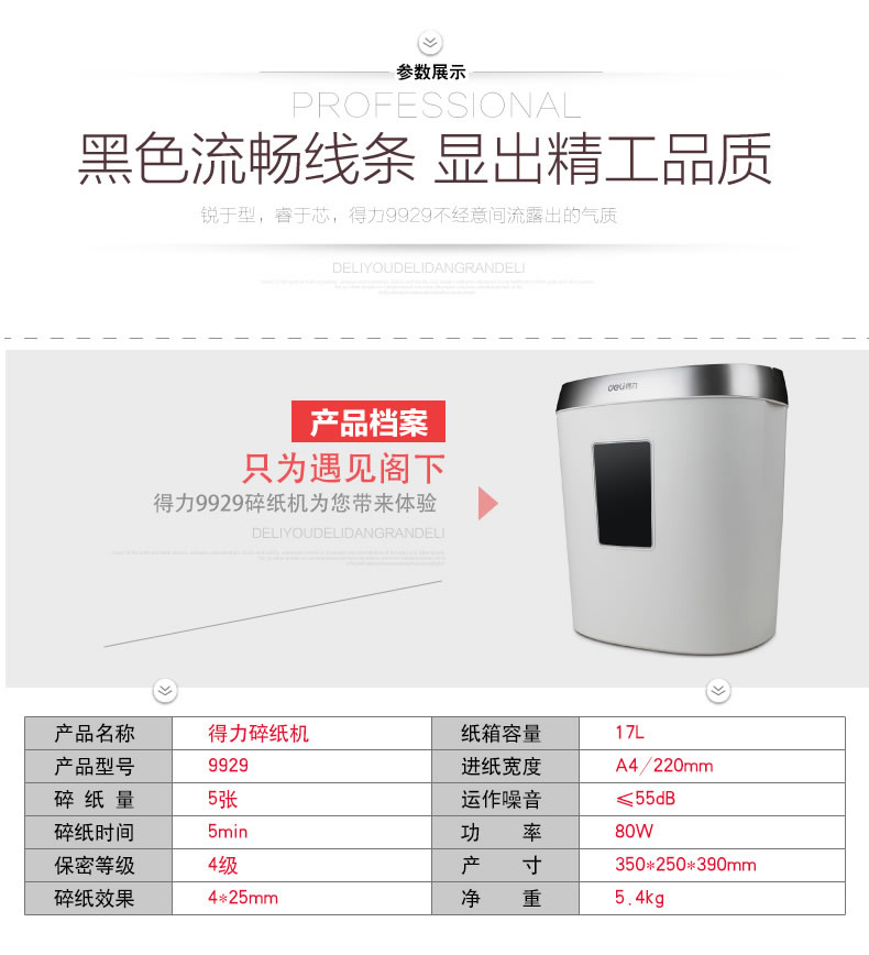 备注:deli得力9929 4级保密碎纸机 、17L小型迷你办公家用电动静音粉碎机 、单次碎纸5张。