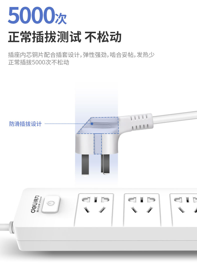 备注:deli得力插座DL18253、4孔3米导线新国标防触电总控开关插座、插排插线板接线板拖线板、4组合插孔。