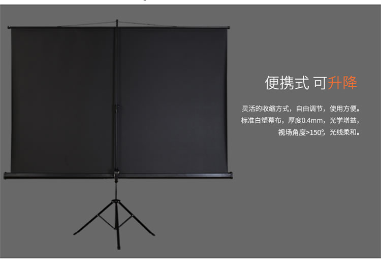 2、灵活的收缩方式自由调节,使用方便随心。标准白塑幕布厚度0.4毫米,光学增益1.1,光线柔和。
