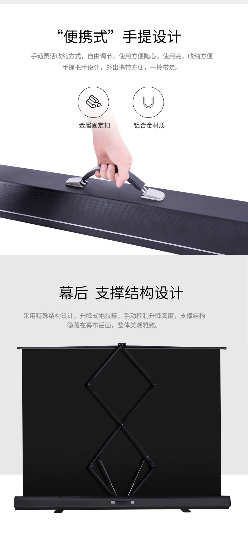 | 产品名称 | deli得力50445 92英寸16:10地拉式免安装投影幕布 移动家用可收缩手提投影幕布 | 货号 | ECS001578 |