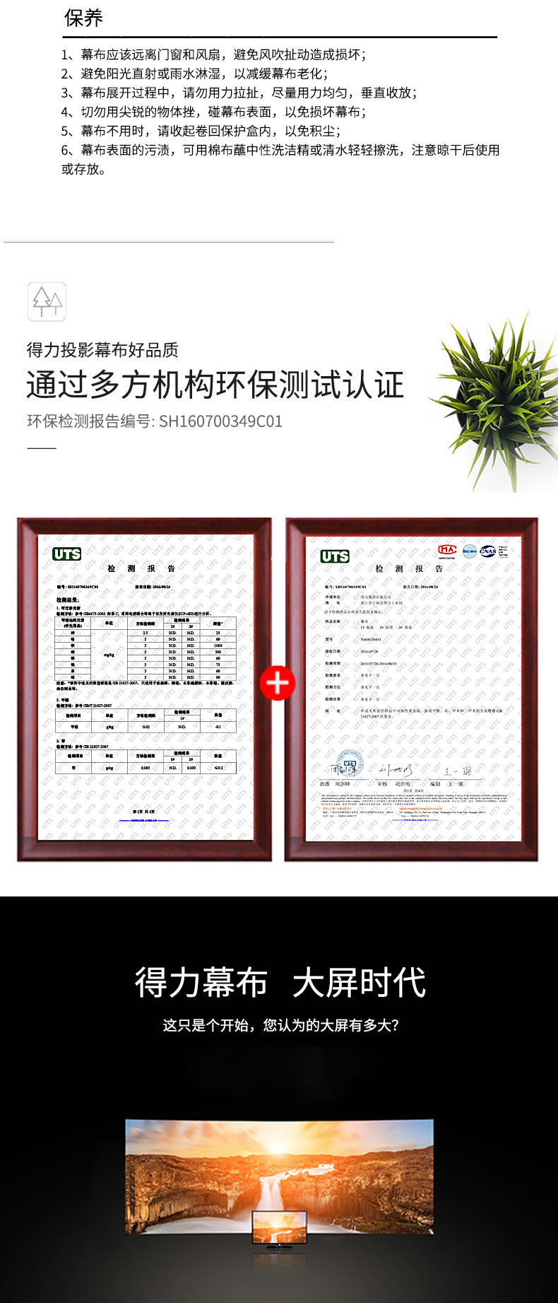 备注:deli得力50445 、92英寸16:10地拉式免安装投影幕布 、家用可收缩投影幕布。