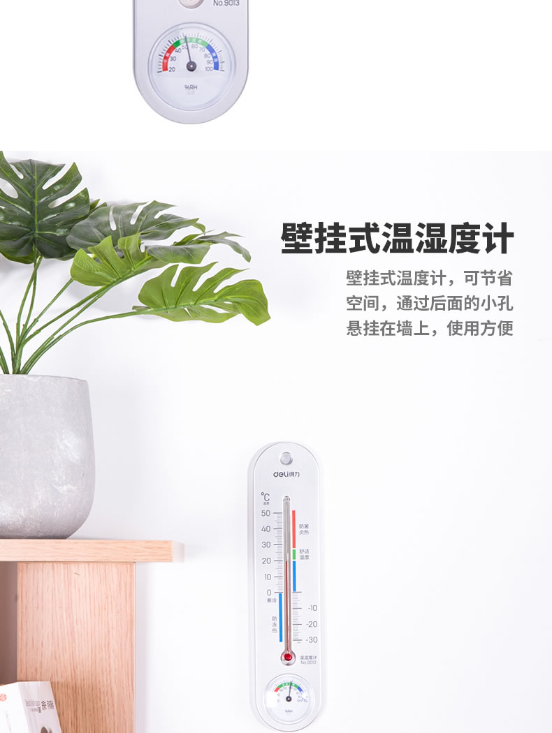 备注:deli得力9013、经典挂壁式温湿度计、温度计 、湿度计。