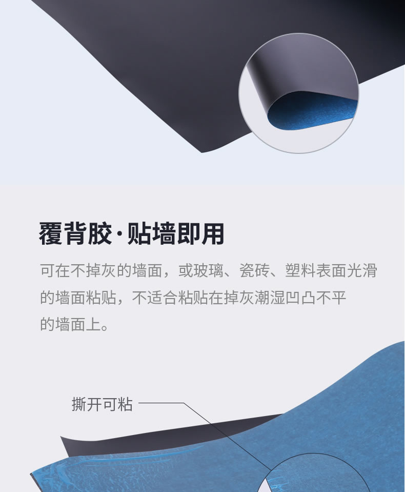 4、附背胶贴墙即用,可在不掉灰的墙面和玻璃、瓷砖、塑料、表面光滑的墙面粘贴,不适合黏贴在吊灰、潮湿、凹凸不平的墙面上。