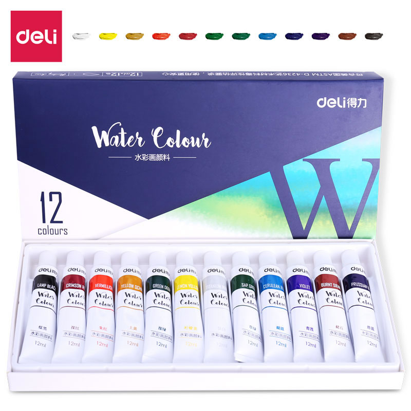 > deli得力12ml美术绘画水彩画颜料 水彩颜料 绘画颜料 73850 12色deli得力73850/73851/73852美术绘画水彩画颜料水彩颜料绘画颜料