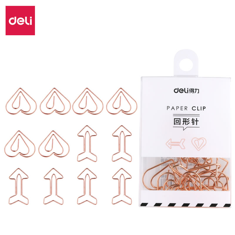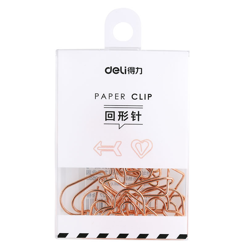 备注:deli得力0057 、12枚装箭头心形造型电镀办公回形针、曲别针。