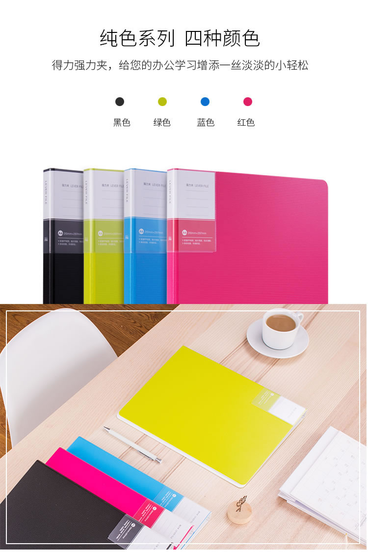 deli得力5046 A4彩色单强力夹文件夹办公资料夹