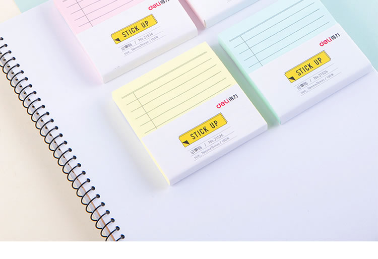 deil得力横线款便利贴纸 彩色记事贴N次贴百事贴76*76mm 12本/1200页 21526