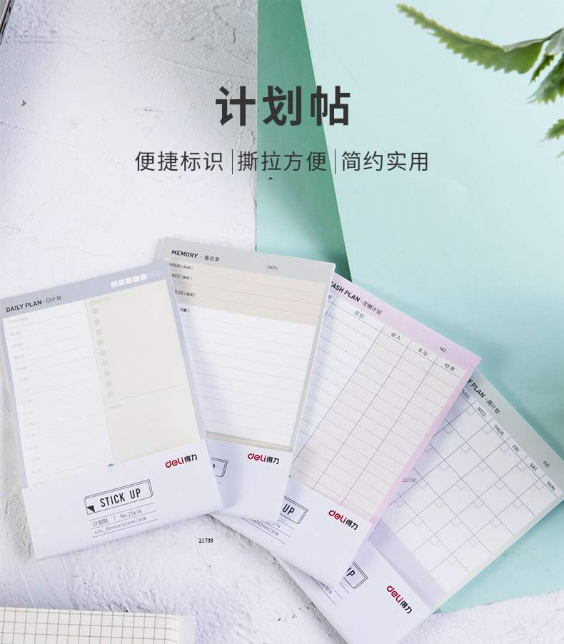 【得力25614记事贴】deli得力办公文具文具佳和旗舰店出售不干胶便利贴,deli得力25614 95*140mm计划型便利贴纸 创意日程记事贴N次贴便签条纸 12本360页,便签纸规格样式颜色齐全欢迎订购。咨询电话:1352-280-4330!