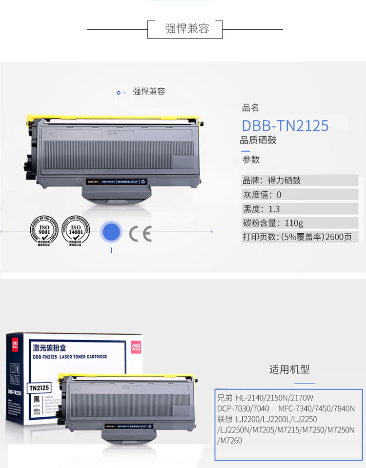 【得力DBB-TN2125硒鼓】deli得力办公文具文具佳和旗舰店出售打印机硒鼓,deli得力DBB-TN2125大容量黑色硒鼓激光墨粉盒碳粉盒,规格齐全欢迎订购。咨询电话:1352-280-4330!