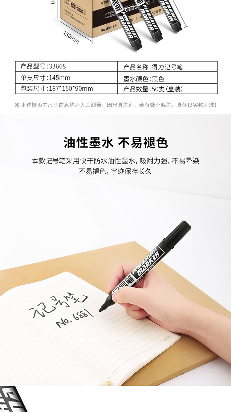 得力(deli)33668黑色物流记号笔 量贩装油性大头笔 50支装