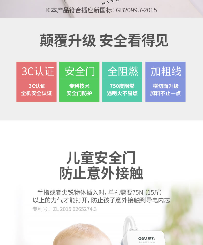 备注:deli得力18244-03、4孔3米导线线电源插座、插排接线板。
