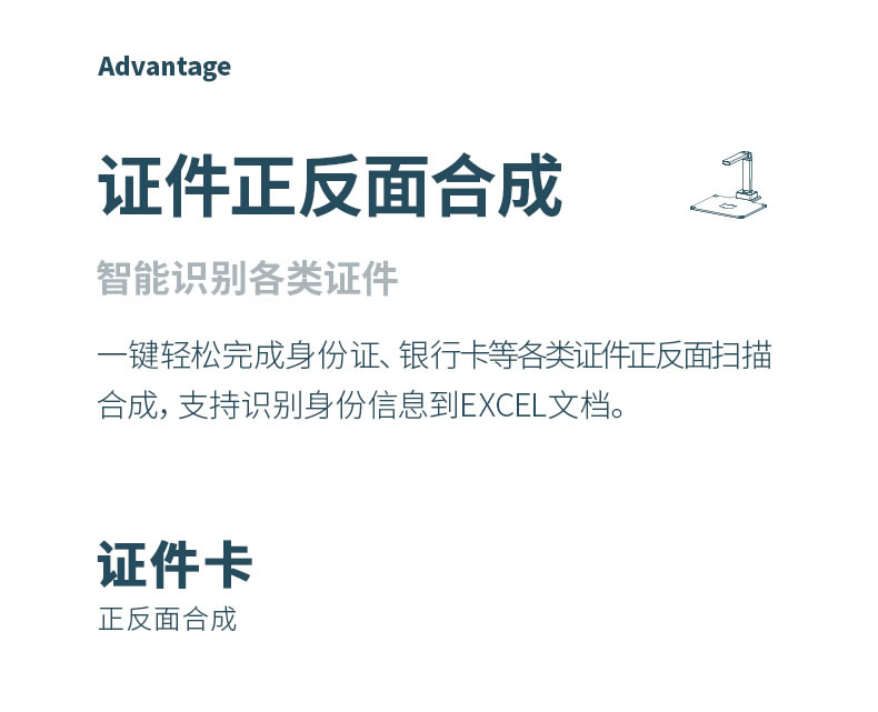 1、软件自动纠斜,自动去黑边,一秒快速扫描,支持定时拍摄,支持各类证件正反面拍照合成。