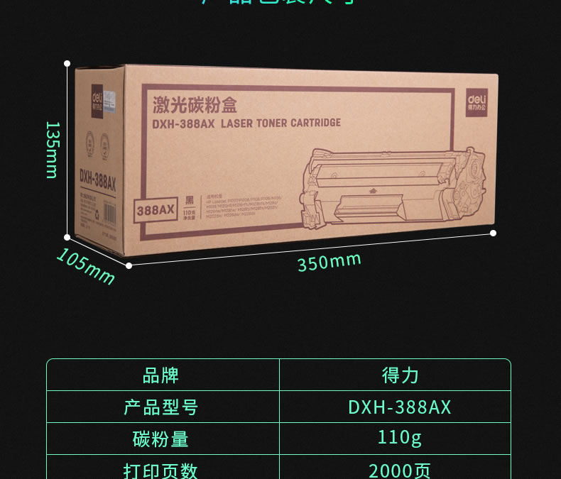 > deli得力DXH-388AX 2000页黑色打印机硒鼓 大容量实惠装激光碳粉盒deli得力DXH-388AX 2000页黑色打印机硒鼓 大容量实惠装激光碳粉盒
