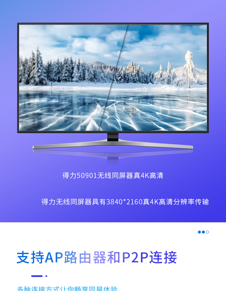 2、智能双频2.4G+5G实时传输:得力无线同屏器,高清文档视频实时传输畅快无误。