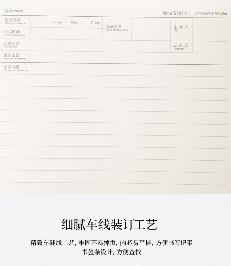 2、内页针对会议设计,会议日期、地点、主持人、出席人员等贴心细节。