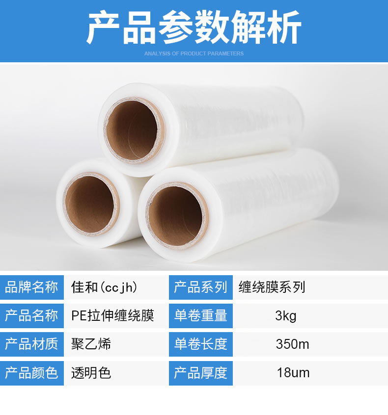 | 产品名称 | 50cm*350m PE拉伸膜缠绕膜塑料薄膜工业保鲜膜大卷打包膜包装膜 3公斤/卷 | 货号 | ECS003606 |
