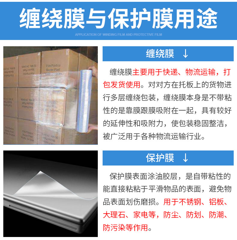 备注:50cm*350m PE拉伸膜、缠绕膜塑料薄膜、工业保鲜膜、大卷打包膜、包装膜。