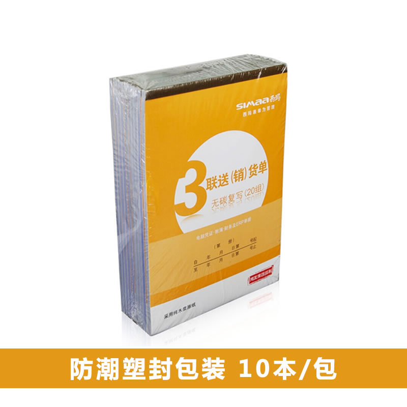 备注:SIMAA西玛SS050312、 129*188mm 32K 3联送(销)货单、 无碳复写 20组/本*10本。
