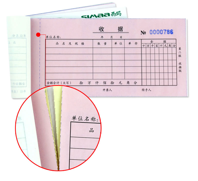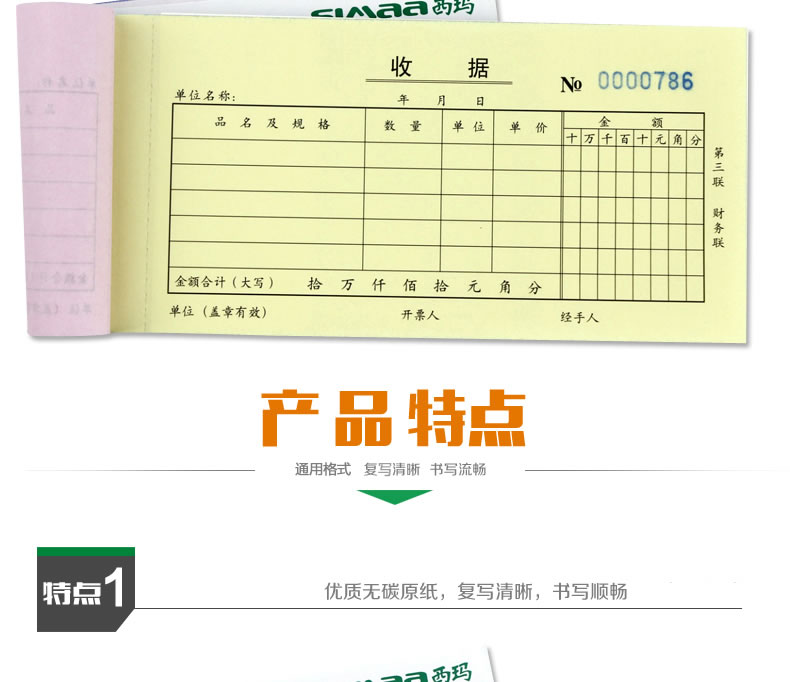 备注:SIMAA西玛SS073302 、175*87mm 48K三联多栏收据 、无碳复写 20组/本*10本。