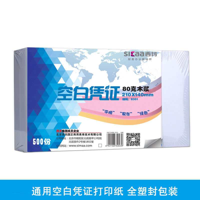 > SIMAA西玛8301 210*140mm 80g空白凭证打印纸 财务会计记账单据 500张/包SIMAA西玛8301 210*140mm 80g空白凭证打印纸 财务会计记账单据 用友T3/T6/U8/KIS/K3软件打印纸