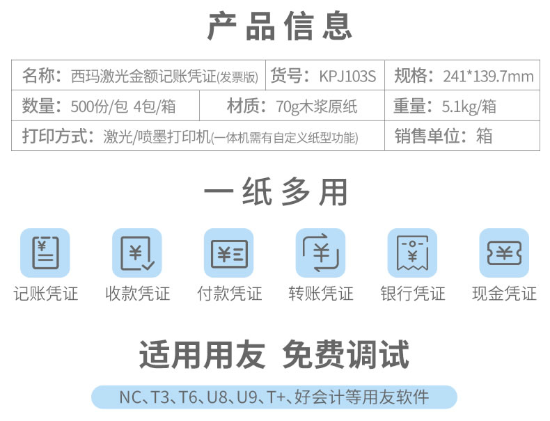 备注:SIMAA西玛KPJ103S 、240*140mm发票版激光金额记账凭证。
