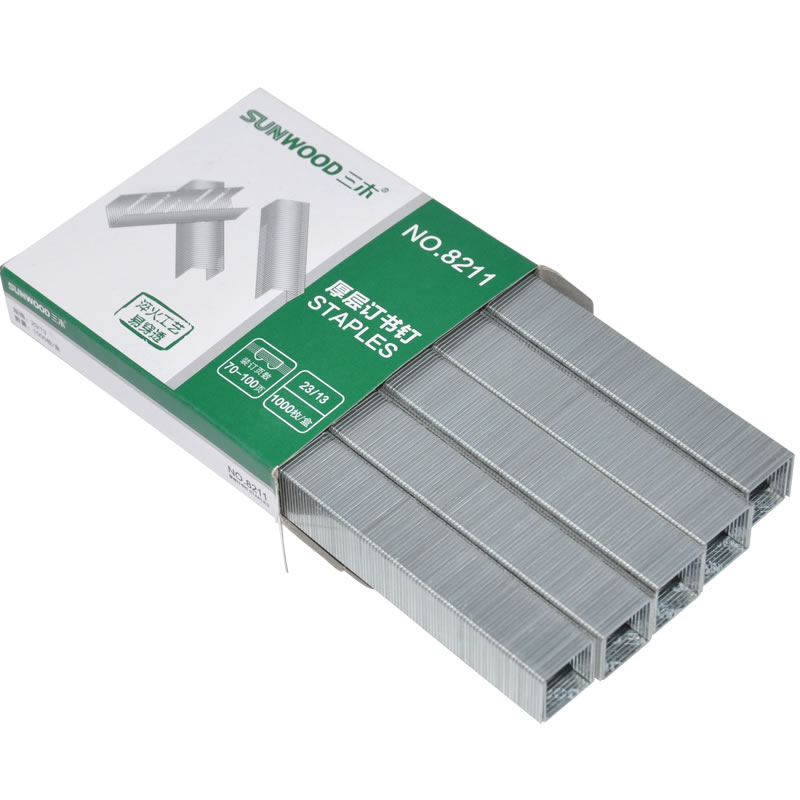 > 三木(SUNWOOD)8211 23/13厚层订书钉订书针 可装订70-100页 1000枚/盒*10盒三木(SUNWOOD)8211 23/13厚层订书钉 可装订70-100页订书针