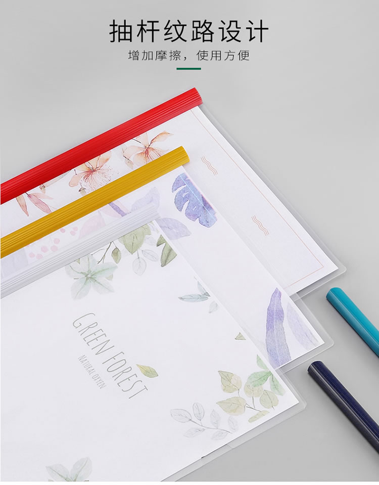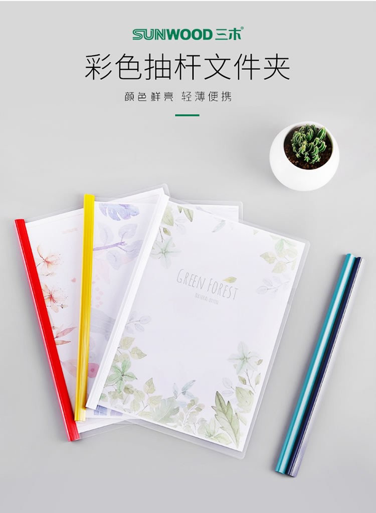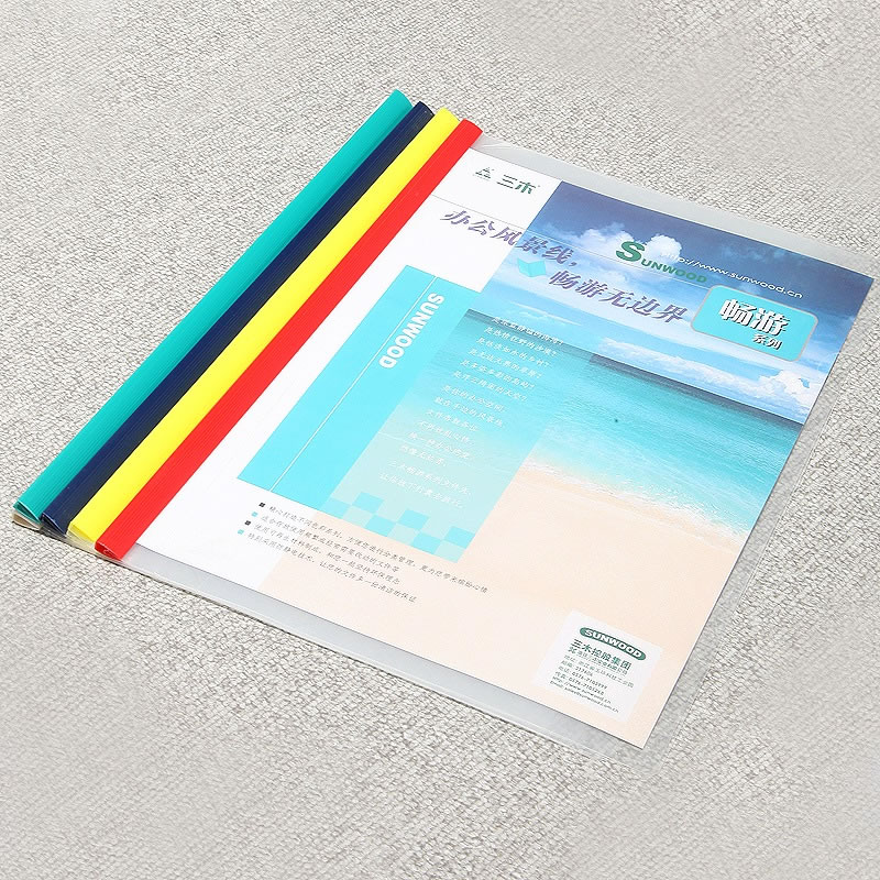 备注:三木(SUNWOOD)HF287A、 A4/3mm透明抽杆报告夹文件夹 、5色杆混装抽杆夹。