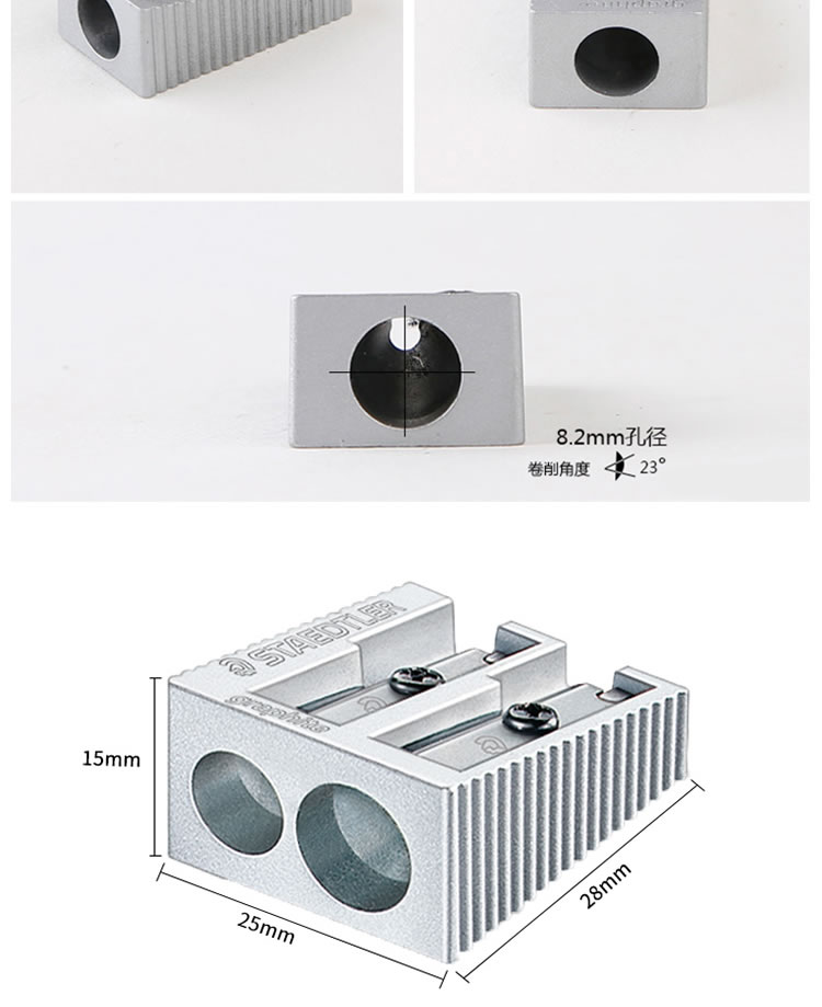 备注:德国STAEDTLER施德楼51010单孔、51020双孔卷笔刀、金属全钢制转笔刀、削笔刀笔刨。