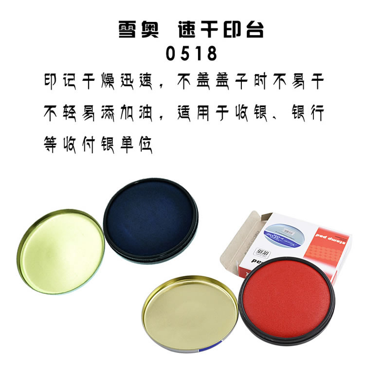 备注:雪奥印台0517 0518红蓝高级易干印盒印台 圆形铁盒快干会计印台
