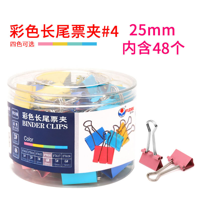 > Fudek富得快FE7616 25mm彩色筒装长尾夹 铁夹子燕尾夹试卷票夹 48只/筒Fudek富得快FE7616 25mm彩色筒装长尾夹 铁夹子燕尾夹试卷票夹