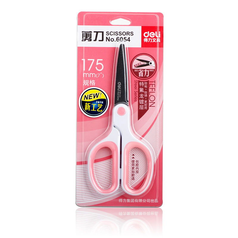 备注:deli得力6054 、175mm特氟龙镀层办公剪刀 、软包胶防滑握家用剪刀。