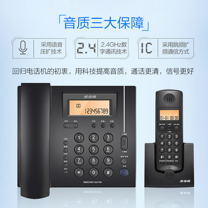 | 产品名称 | 步步高(BBK)W263数字无绳固定电话机 家用办公无线座机 子母机一拖一 内部对讲三方通话电话机 | 货号 | ECS004563 |