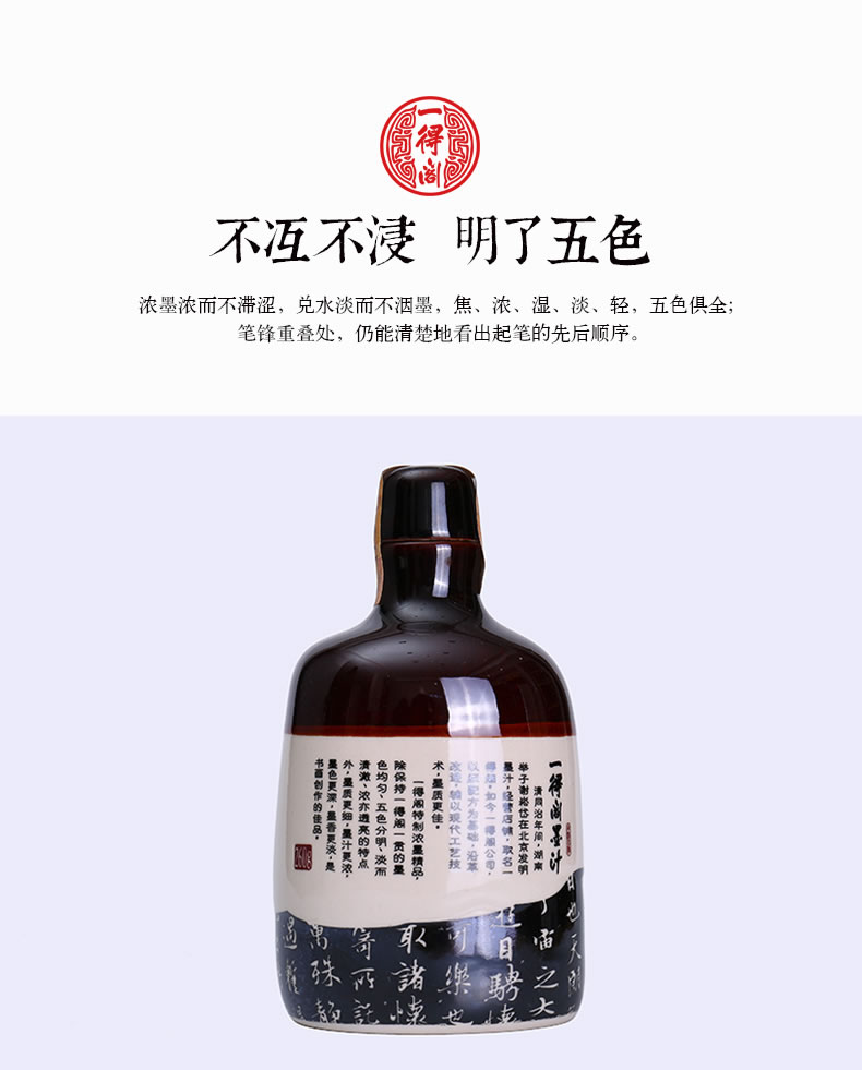3-博采众长,自成一方,匠心选料,制作考究,无人工添加剂,配方上略有改良,墨汁更细,浓,黑,亮。