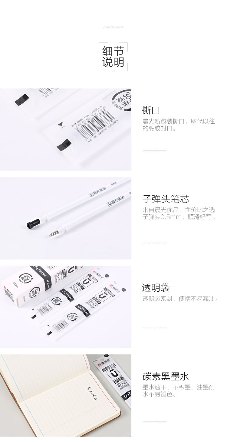 | 产品名称 | 晨光(M&G)7017 0.5mm黑色时尚办公中性笔芯 顺滑好写子弹头签字笔替芯 优品系列水笔芯 12支装 | 货号 | ECS005207 |