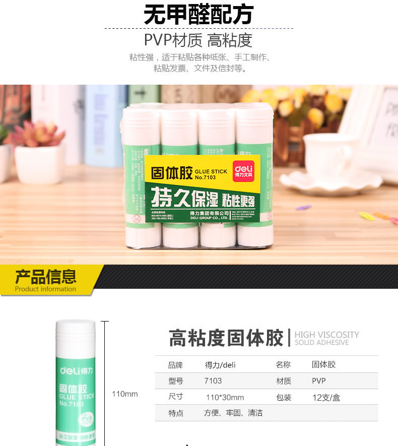 【得力7103胶棒】deli得力办公文具文具佳和旗舰店出售各种胶棒胶水,deli得力固体胶 7103 36克胶棒 12支装 ,胶水胶棒规格样式颜色齐全欢迎订购。咨询电话:1352-280-4330!