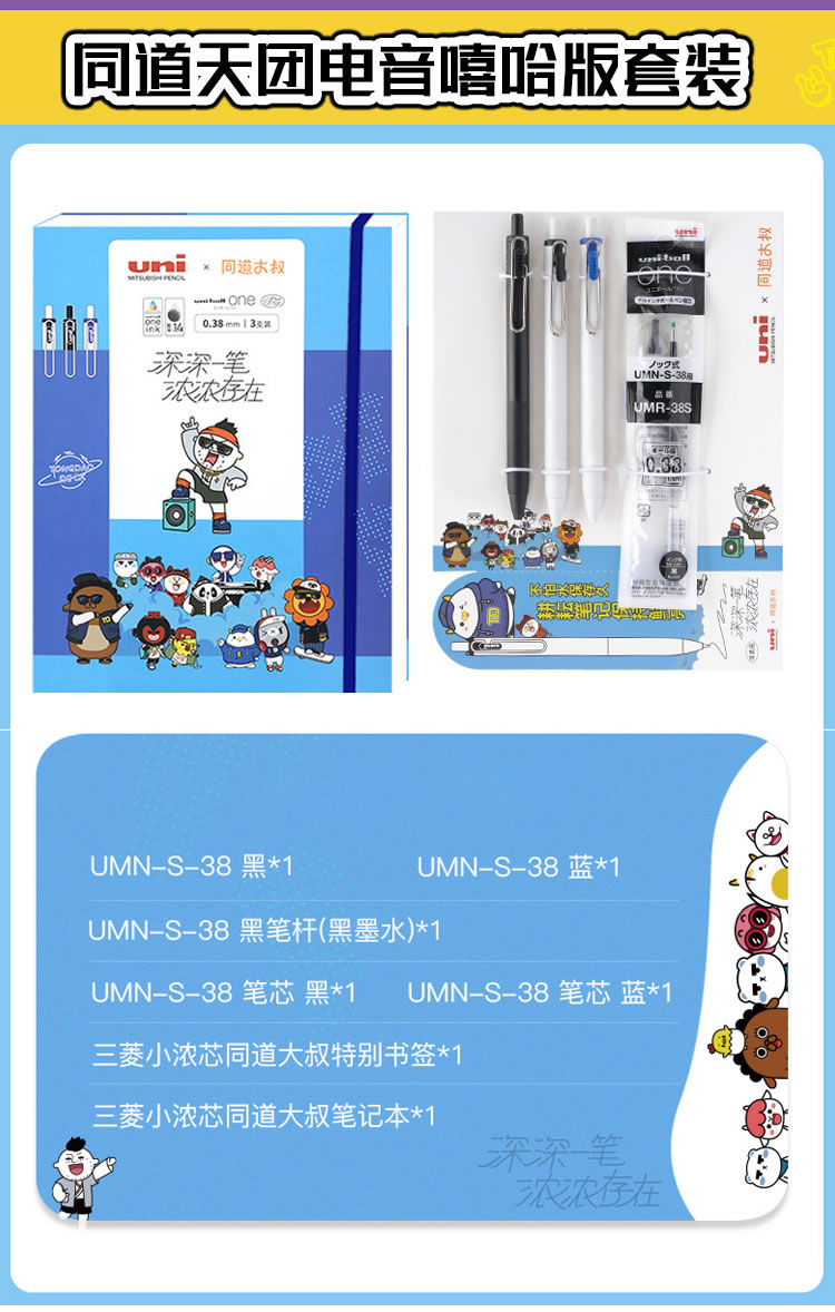 备注:日本三菱(Uni)uni-ball one UMN-S-38 0.38mm小浓芯同道大叔联名IP款礼盒套装、UMN-S-38按动中性笔组合装。