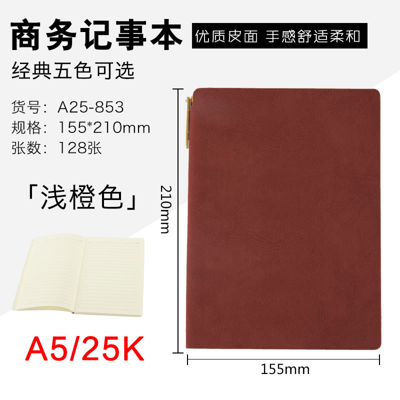 备注:喜通(heeton)128张 A5/25K 853商务皮面记事本、 A5/25K-853 PU插笔厚手帐本笔记本、A5/25K-853带笔文具本子工作办公读书会议记录本。