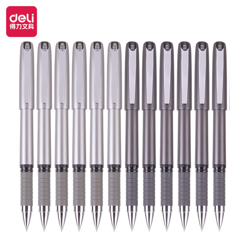 得力S25 0.5mm金属喷漆黑色中性笔签字笔碳素笔水笔 12支装