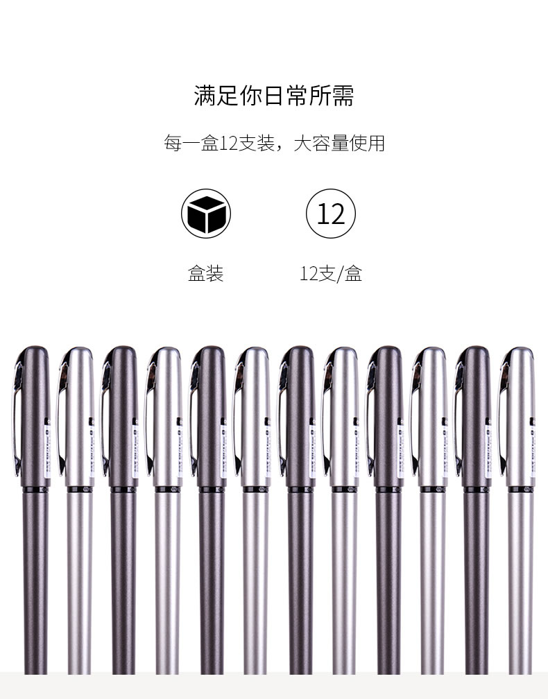 得力S126 1.0mm加粗磨砂笔杆办公中性笔 签字笔碳素笔水笔 12支装