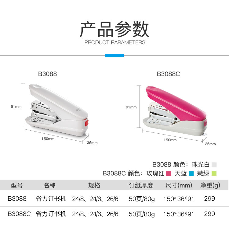 备注:齐心(Comix)装订50页50张B3088 12#省力订书机订书器、齐心装订50页50张B3088订书机订书器、齐心B3088 12#省力订书机订书器。