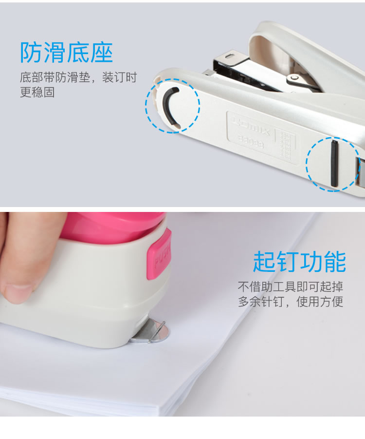 3-尾部起钉功能,不借助工具即可去掉待起书钉,使用方便。