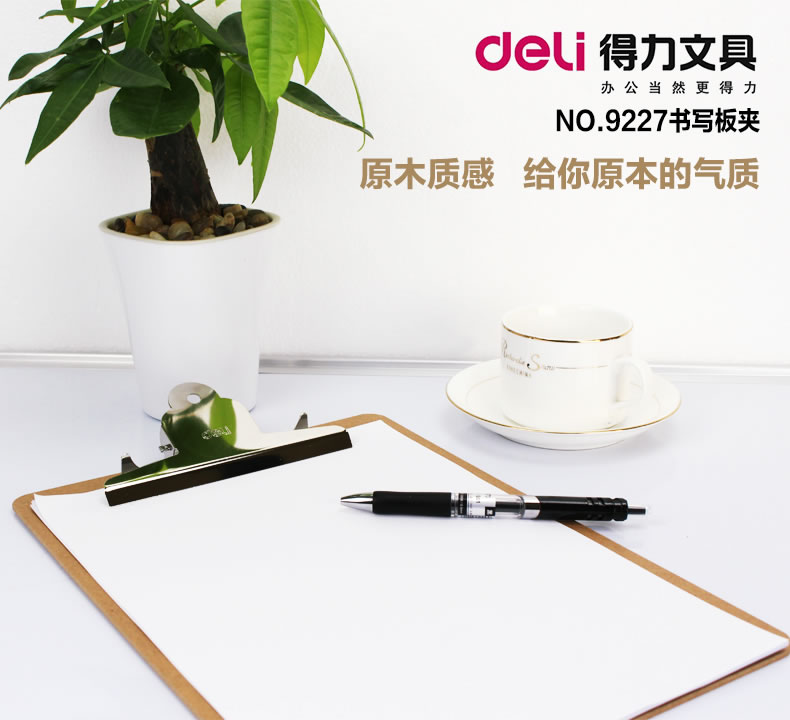 1、得力9227木质书写板夹,简约时尚,彰显气质金属家具品质保障。