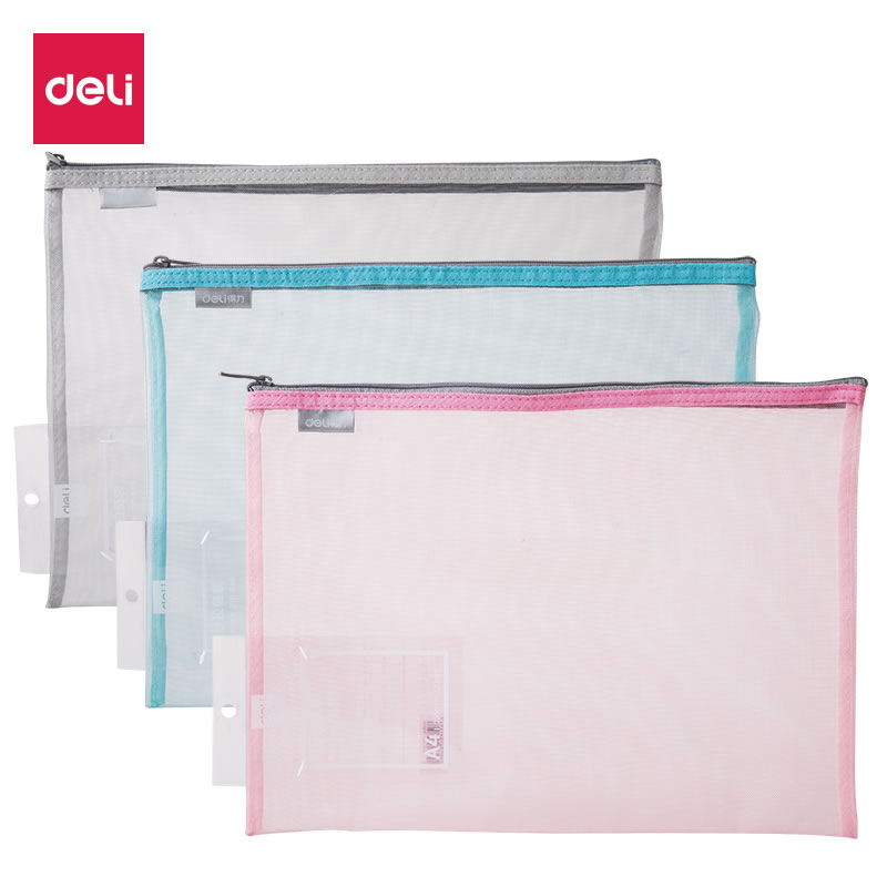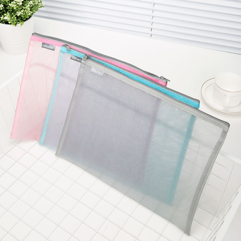 得力A4网纱拉链袋 5544透明网格拉链袋资料袋文件袋票据袋拉边袋